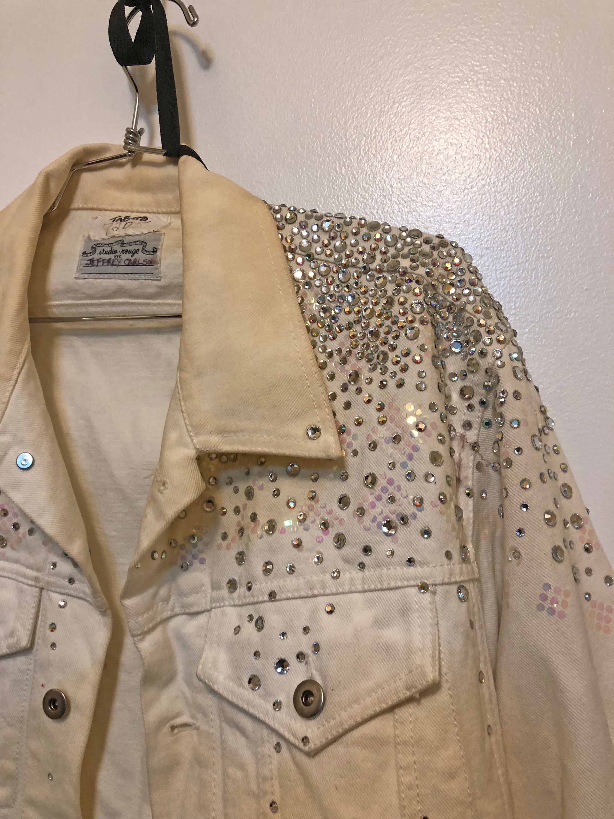 Bedazzled Jacket and Union Jack Shorts worn by Jeffrey Carlson. This was one of his "Marilyn" costumes in TABOO. Costume design by Bobby Pearce (2004 Tony Award nominee)