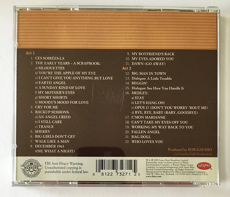 Original cast recording of the Broadway production of JERSEY BOYS, directed by Des McAnuff. Sets by Klara Zieglerova, costumes by Jess Goldstein. Pre-owned CD in very good condition.